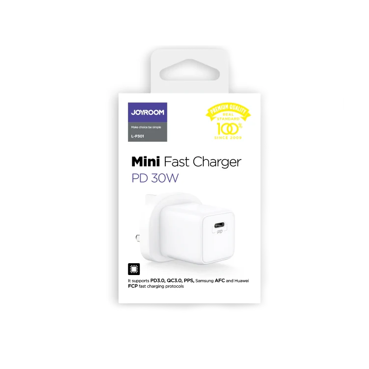 The Joyroom L-P301 is a powerful and portable fast charger that offers efficient and safe charging for your compatible devices. With its 30W output, it supports high-speed charging, allowing you to quickly top up your phone, tablet, or other devices.