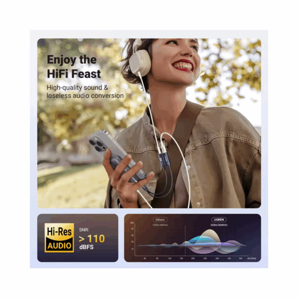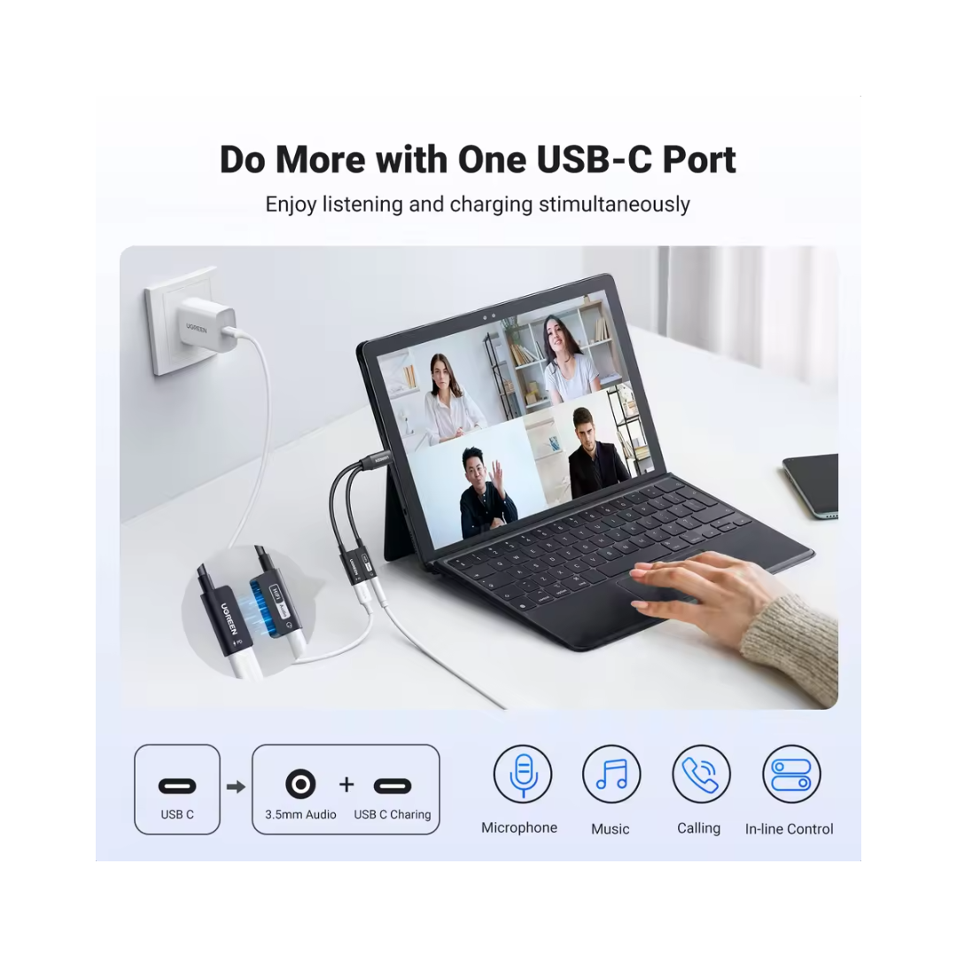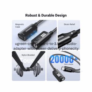 The UGREEN CM721 is a versatile USB-C to 3.5mm audio adapter designed to provide a solution for devices that lack a dedicated headphone jack. This adapter goes beyond simple audio conversion by incorporating a USB-C Power Delivery (PD) port, allowing users to charge their device while simultaneously listening to audio through a standard 3.5mm headphone or speaker. This dual functionality makes it an ideal accessory for smartphones and tablets with a single USB-C port, eliminating the need to choose between charging and audio.