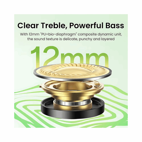 The UGREEN HiTune P3 (WS207) True Wireless Earbuds are designed to provide a comprehensive and immersive audio experience for everyday use. They are engineered with 12mm bio-diaphragm dynamic drivers that deliver a rich, full-spectrum sound profile, characterized by powerful bass and clear, detailed treble. A key feature is their Hybrid Active Noise Cancellation (ANC), which uses both external and internal microphones to continuously monitor and neutralize ambient sounds, allowing you to focus on your music or calls. For those who need to stay aware of their surroundings, a Transparency Mode is also included. Additionally, the earbuds offer a dedicated low-latency Gaming Mode, which reduces audio lag to as low as 60ms, ensuring that sound is perfectly synchronized with on-screen action for gamers and video watchers.